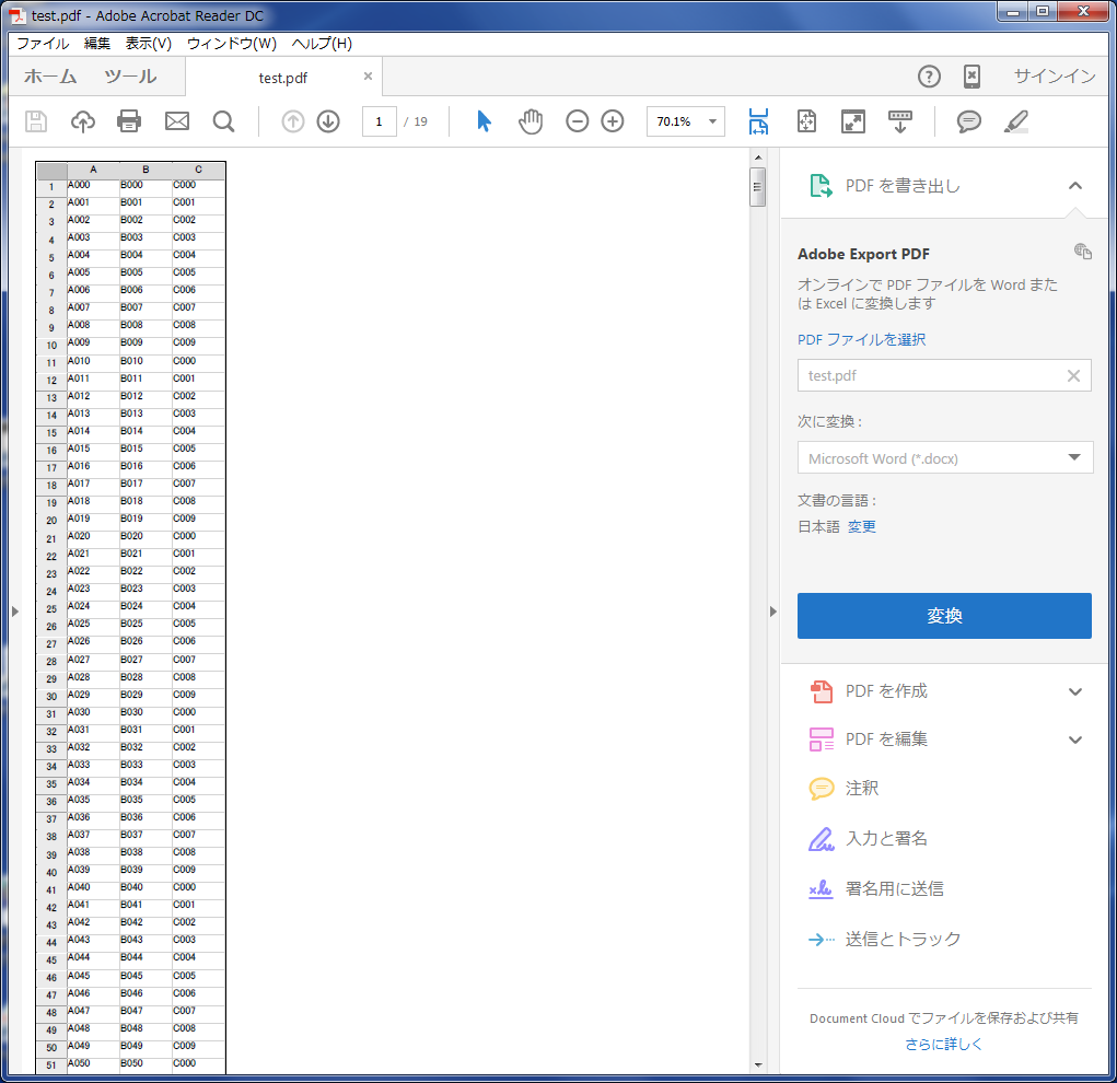 ここで注意点があります。「PrintSheet」メソッドの直後でのPDFファイルの表示処理がコメントになっていますが、 コメント部分を実行に戻して処理すると、「AcrobatReader」は起動するのですがPDFファイルが見つからないとエラーになります。 「PrintSheet」メソッドの直後ではタイミング的に、まだPDFファイルの出力が終了していないので、エラーになる様です。