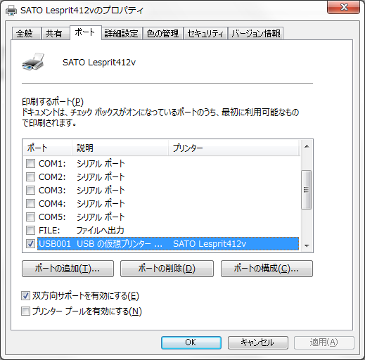 プリンタドライバのプロパティでUSBでの接続にしてあります。