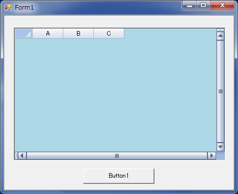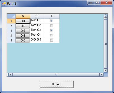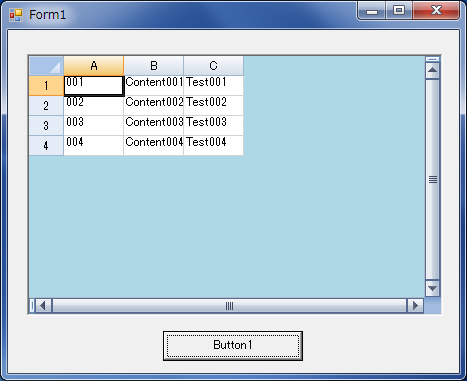 下図は、最初、フォームが表示後、「Button1」をクリックした結果が以下の図です。