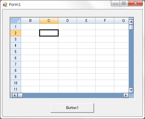 SPREADからボタンにフォーカスを移動すると、以下の様になります。 (ボタンのクリック時イベントの処理には何も記述していないので、 ボタンをクリックすることでフォーカスは移動します。)