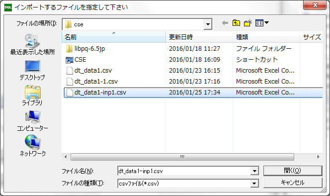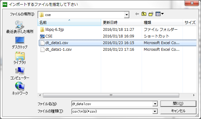 「CSE」を使ってPostgreSQLのデータベースのテーブルに、CSVデータ入力(インポート)を行ってみます。