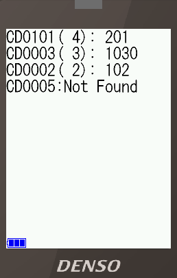 バイナリサーチの3番目まではレコードの内容を読めていますが、 4番目のコード"CD0005"はテストデータ書込みで行っていないので レコードは検索できません。