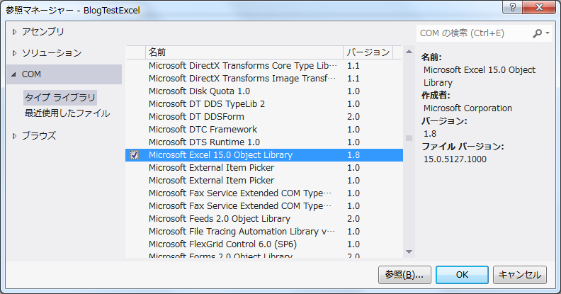 先ずはプロジェクトに Microsoft.Office.Interop.Excel の参照設定を行う必要があります。