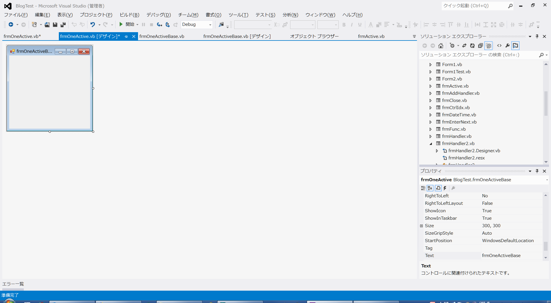 先ずはフォーム名をfrmOneActiveBaseとして、 ソース内容は上記の「最初のフォームActivatedイベントでの処理」の内容をそのままコピーしてきます。 但し、テキストボックスの処理は削除してあります。