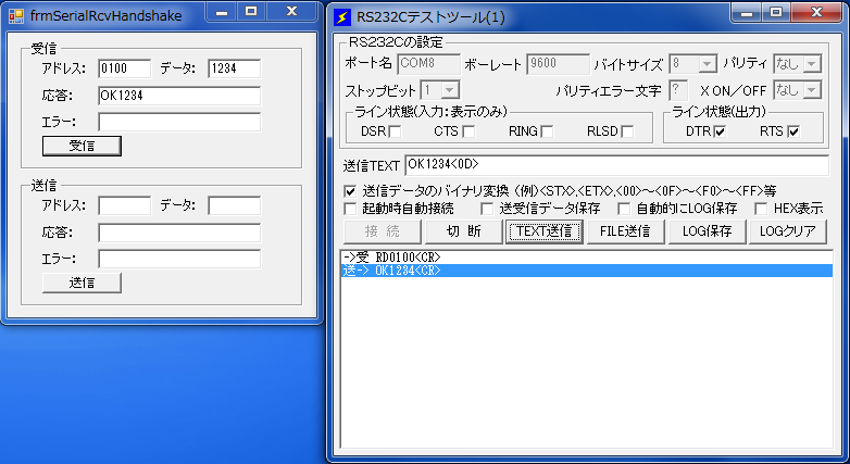 SerialPortコントロールの使い方その6(シリアル通信クラス・ハンドシェィク受信クラス)使用例