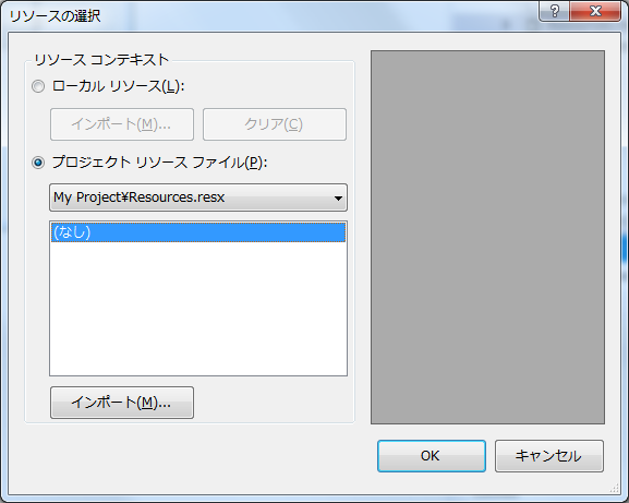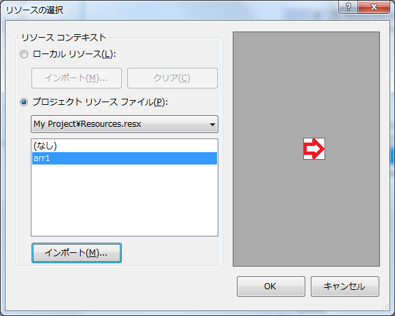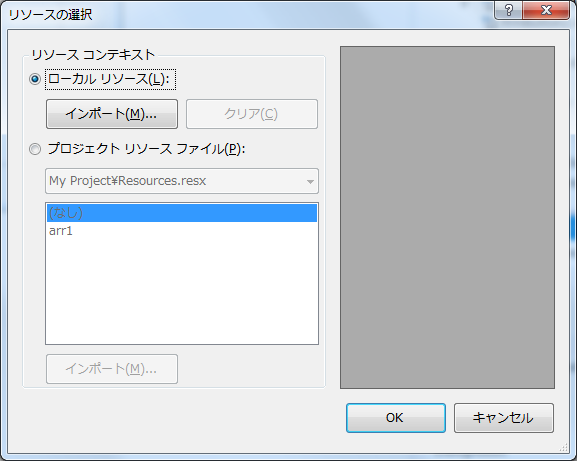 上のダイアログの「ローカル リソース」の「インポート(M)」ボタンをクリックします。