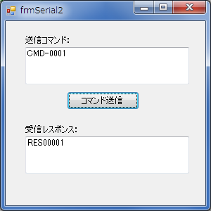 送信する文字列を 送信コマンド: TextBox に入力し、「コマンド送信」ボタンを押下します。